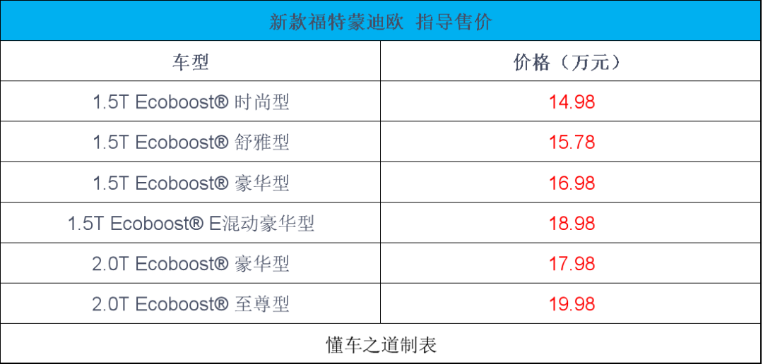 12月4日,新款福特蒙迪欧正式上市,新车共推出6款配置车型,售价区间为14.98-19.98万元。作为中期改款车型,新款蒙迪欧针对外观和内饰细节以及动力上均有升级,值得一提的是,新车全系标配高通8155芯片,车机升级至SYNC+智行互联系统,新车定位为中型车。动力方面,新款蒙迪欧搭载第五代2.0T EcoBoost双涡流涡轮增压发动机,最大功率提升至261马力,峰值扭矩达到408N·m。匹配福特自研8AT变速箱。同时,新款蒙迪欧全面覆盖1.5T、2.0T燃油版及1.5T混动版本,1.5T燃油版最大功率196马力,1.5T混动版本最大功率208马力。