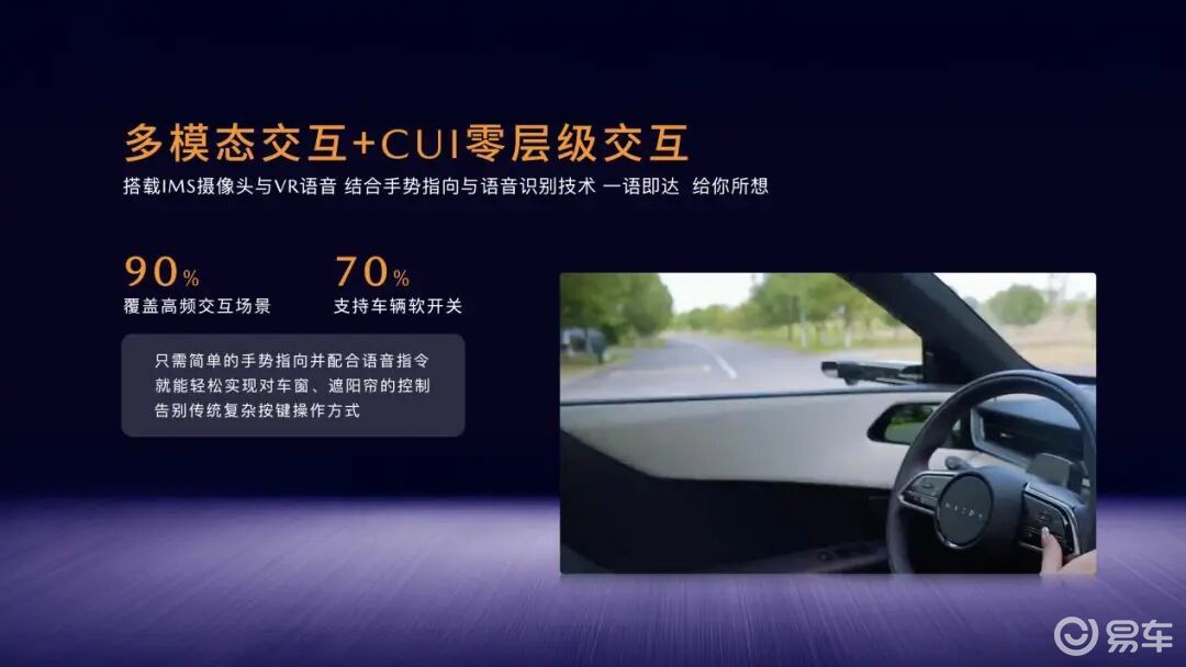 智能交互方面,EZ-60 实现 “所指即所控” 多模态交互,用户指向遮阳帘、车窗等部件并说出指令,即可精准控制;CUI 零层级交互覆盖 90% 高频场景,无需繁琐操作,指令下达即响应;车外配备 4 颗独立麦克风与声纹识别技术,即便在地库等嘈杂环境,指令识别率仍超 95%。