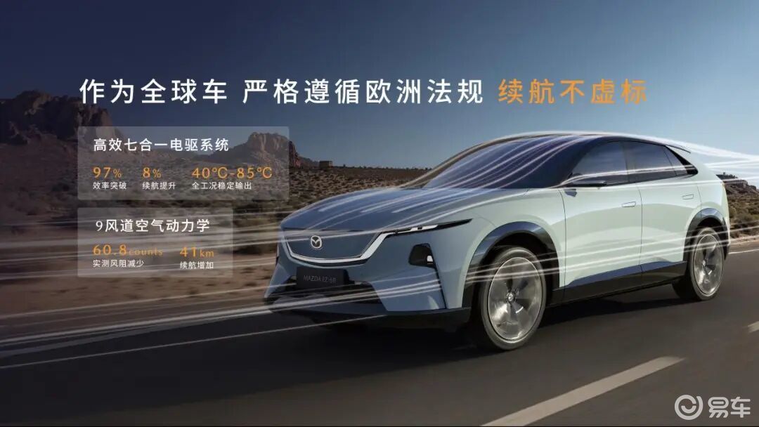 EZ-60 以中欧 9 国道路性能标准为开发基础,集结中国南京、重庆,日本广岛,德国法兰克福三国四地工程师团队,历经 200 余种调校方案验证,将马自达 “人马一体” 驾趣融入电动化车型。