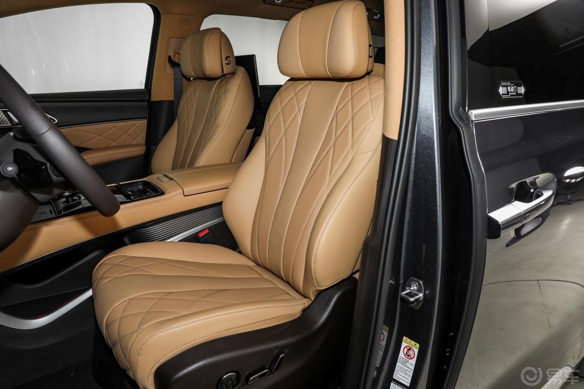 腾势D9同样搭载双零重力座椅,通风加热按摩全都配齐,但仅有16点按摩,座椅调节12向,舒适性略逊一筹,7.5L智能冷暖冰箱、前后排大彩电也应有仅有,但冰箱容积和中控屏尺寸相对较小一些。