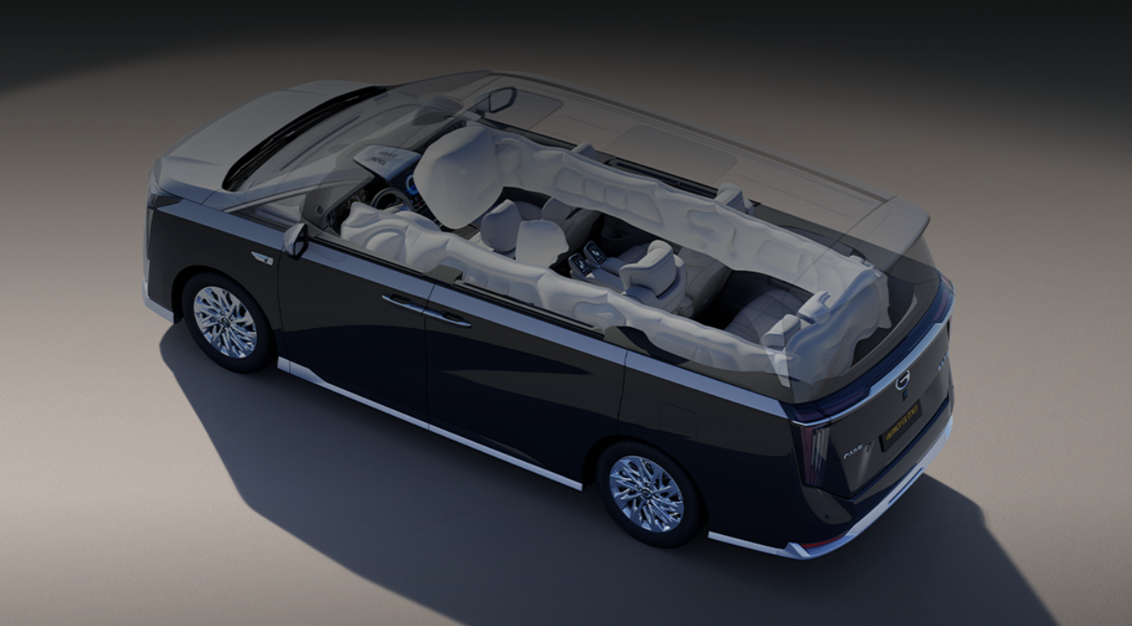 传祺向往M8乾崑车身采用“八纵十九横”超高强度结构,高强度钢占比达85.6%,并且创新性地在MPV车型中引入了后风窗气囊,并且与最长达3.2米的一体式侧气帘、正面气囊及前排侧气囊共同组成的360°环抱式安全气囊,即使第三排乘客也能获得安全重视。电池安全方面,传祺向往M8乾崑采用宁德时代骁遥增混3C电池,远超新国标。
