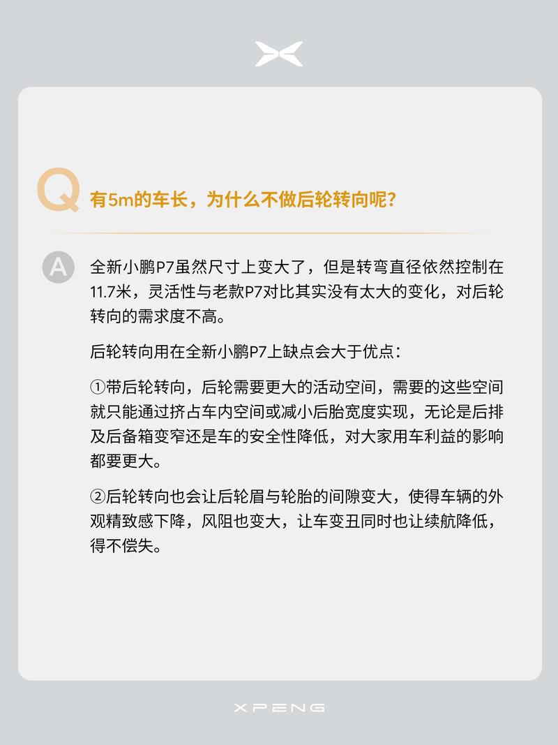 车讯 今日,小鹏汽车发布了全新小鹏P7第六期答用户问,解答关于门把手有没有机械冗余;侧翼支撑功能有什么作用;有5m的车长,为什么不做后轮转向;车高这么低,会不会很容易磕底等问题。