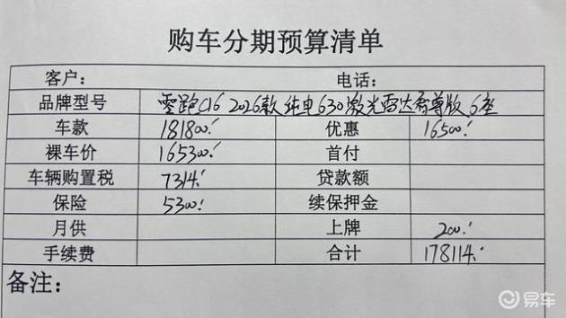 然而,大多数消费者更倾向于选择零跑C16的六座版本,例如指导价16.18万元的增程激光雷达版。目前该配置的终端优惠约为1.55万元,优惠后的车价为14.63万元,加上购置税、保险和上牌费用,落地价约为15.8万元。需要注意的是,如果您选择贷款购车,以贷款10万元为例,两年的总利息在5000元以内,五年的利息在1.2万元以内。全款购车加上利息,总的落地价并不算高,利率相当于2厘,超过这一利率就不建议选择了。