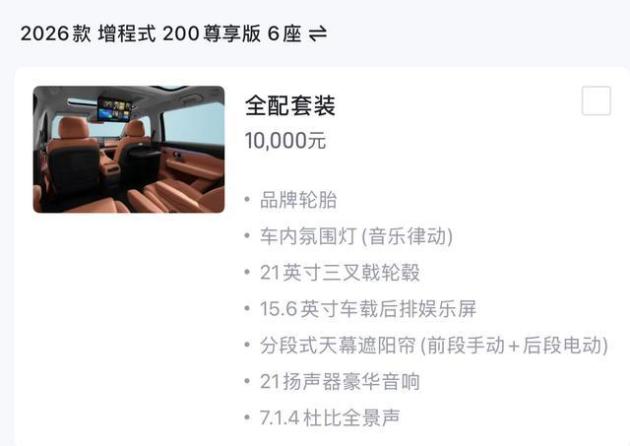 如果您希望提升车辆的舒适性和豪华感,可以考虑限时优惠5000元的选装包,内容包括21英寸轮毂、氛围灯、后排娱乐屏、分段式全景天窗和21扬声器。原价1万元的选装包现在只需5000元,性价比较高。