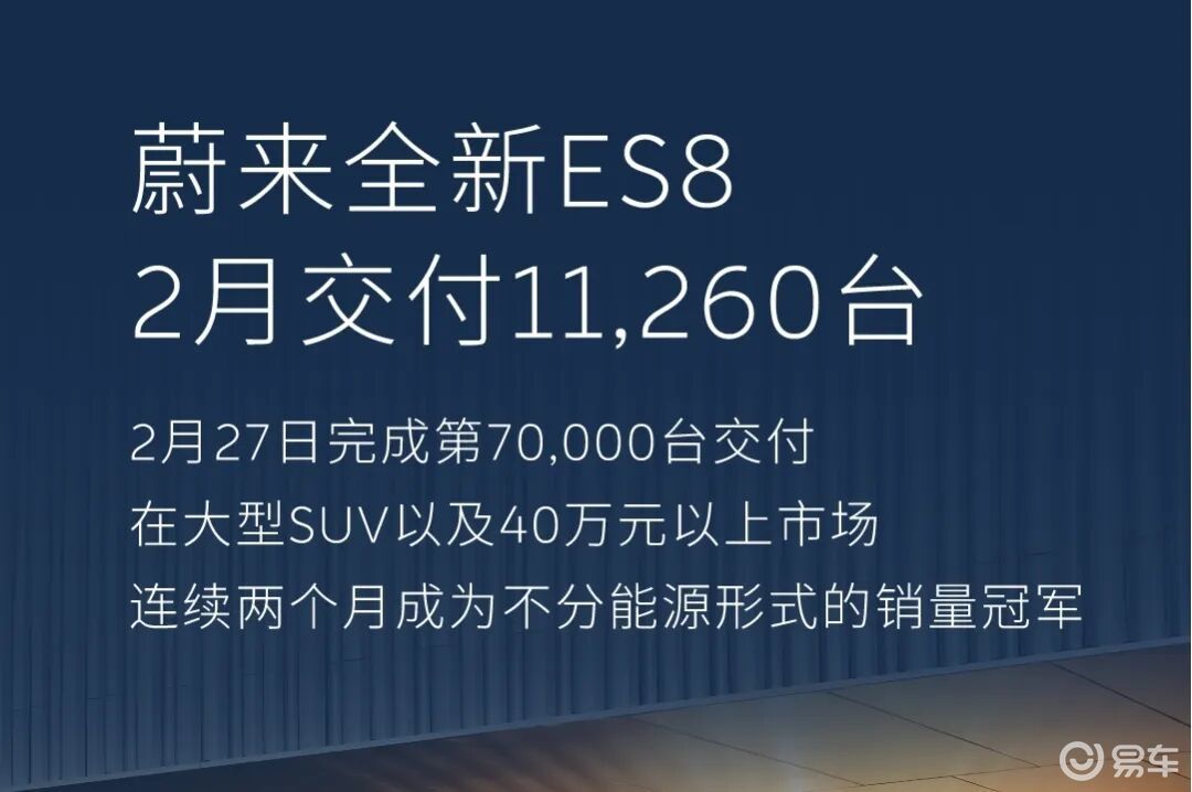 2月27日,蔚来全新ES8在温州完成第7万辆交付。回溯该车的上一个“万辆”里程碑,则是当月1日在广州完成的第6万辆交付。短短一个月内连续迈过两道“万辆”大关,对绝大多数其它品牌旗下的大型SUV而言几乎就是“不可能的任务”,足证全新ES8之实力。