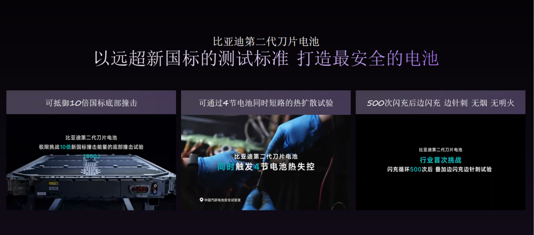 作为车型核心竞争力,新车全系搭载800V高压平台与第二代刀片电池,真正实现“5分钟充好,9分钟充饱”:常温环境下,充电5分钟即可将电量从10%补充至70%,9分钟可从10%充至97%;即便在-30℃严寒条件下,充电时间也仅比常温增加约3分钟。电池安全与耐久性上,第二代刀片电池历经多重严苛测试,可实现500次闪充循环后边闪充边针刺无烟无明火,还能抵御10倍国标底部撞击、通过4节电池同时短路的热扩散试验,安全耐用、值得信赖。电池质保权益同步升级——容量低于77.5%免费包换,电芯终身保修,彻底消除用户用车后顾之忧。