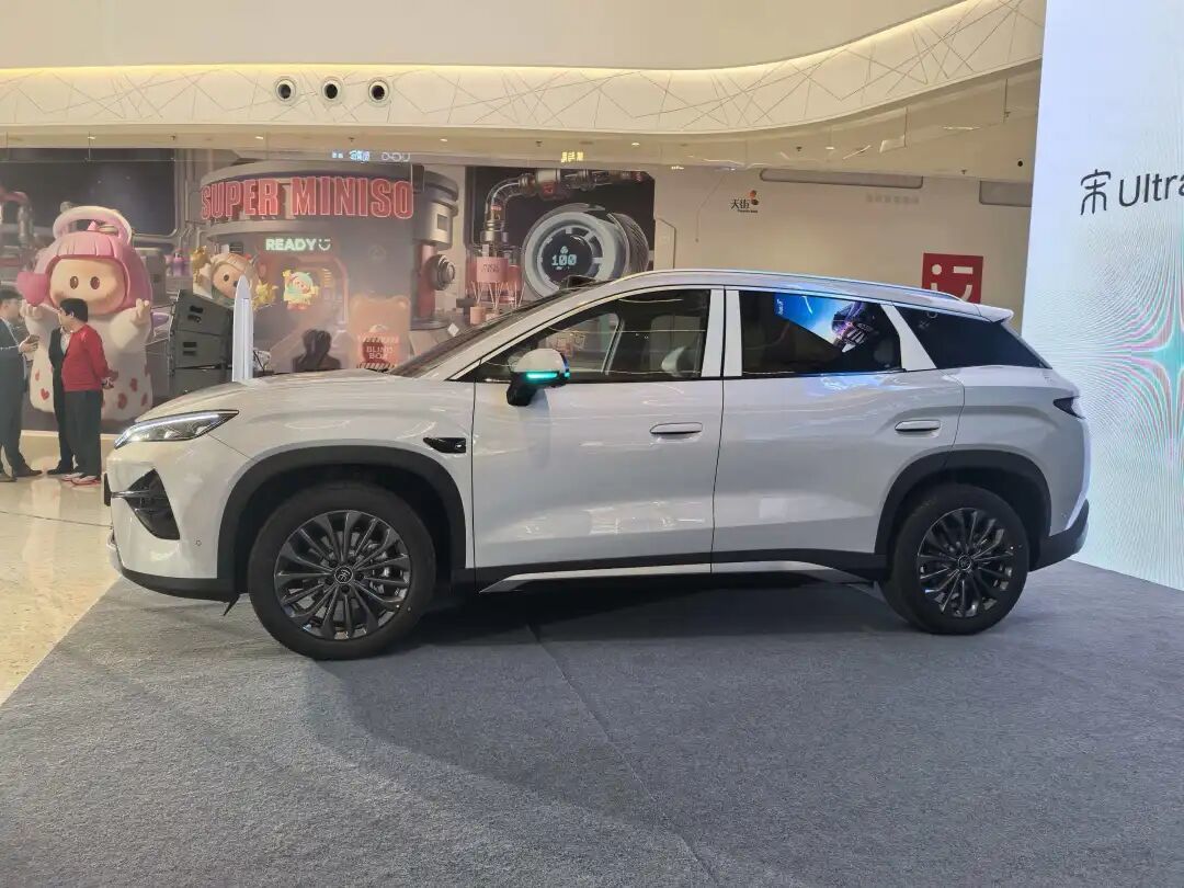 外观设计上,宋Ultra EV延续家族设计风格,整体线条沉稳舒展,精准契合家庭用户主流审美。车身尺寸达4850mm×1910mm×1670mm,2840mm的超长轴距赋予其标准中型SUV的充足气场,空间表现越级突出。